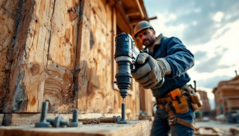 For log screws and lags (the thick, coarse-threaded fasteners used in structural work), an impact driver is nearly essential. Pre-drilling is still required for hardwoods and to prevent splitting, but the impact action drives lag screws with far less user effort than a standard drill. A typical 3/8-inch×3-inch lag screw seats smoothly in pressure-treated pine or 2×6 lumber without binding.